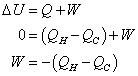 ดังนั้นความร้อนสุทธิที่ไหลเข้าไปในเครื่องจักรจะเท่ากับงานสุทธิที่เครื่องจักรทำ
