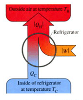(refrigerator) คือเครื่องจักรความร้อนที่ทำงานแบบผันกลับ เครื่องจักรความร้อนรับเอาความร้อนจากที่ร้อนกว่าแล้วคายความร้อนออกไปในที่ที่เย็นกว่า
