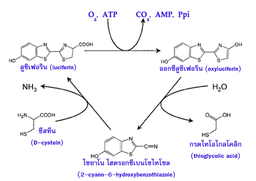 อ้อ ไม่ใช่หรอกจ๊ะ หิ่งห้อยจะมีเอนไซม์เพื่อเปลี่ยนออกซีลูซิเฟอรินปลับมาเป็นลูซิเฟอรินจ๊ะ