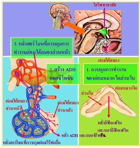 ทางตรง โดยมีสมองส่วนไฮโพทาลามัสควบคุมการหลั่งโดยตรง เช่น