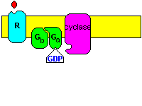 ซึ่งขณะนี้จะอยู่ในรูปที่ทำงานได้ (active state) แล้วจะไปกระตุ้นการทำงานของเอนไซม์อะดินิลไซเคลส