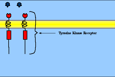 โดยด้านนอกจับกับ ฮอร์โมนแต่ด้านในจับกับไทโรซีนไคเนส (tyrosine kinase)