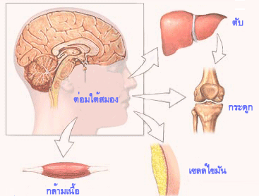 factor) สารเหล่านี้ จะไหลเวียนไปในกระแสเลือด จนไปถึงอวัยวะ ที่มีตัวรับสัญญาณ