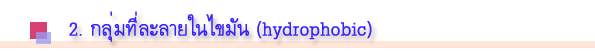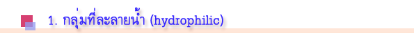 กลุ่มที่ละลายน้ำได้ดีเพราะว่ามีโครงสร้างทางเคมีที่ชอบน้ำได้แก่