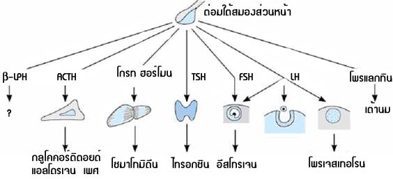 จากภาพลูกศรเส้นสีดำเต็มจะเป็นการแสดงการกระตุ้นการสร้างฮอร์โมน