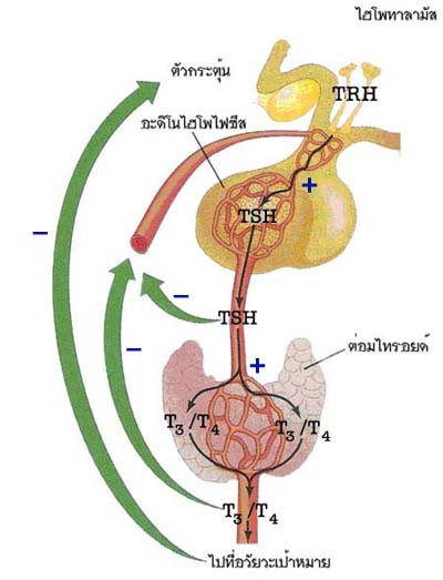 releasing hormone: TRH) จากไฮโพทาลามัสมากระตุ้นการหลั่งของTSH