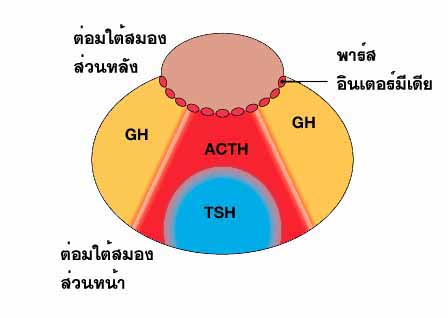 hormone : adrenocortico trophic hormone เรียกย่อว่าACTH) สร้างจากคอร์ติโคโทรปิกเซลล์