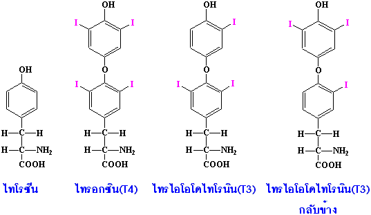 (tyrosine) ที่สำคัญ 2 ชนิด ที่มีผลต่อเมแทบอลิซึมของร่างกายคือไทรอกซิน