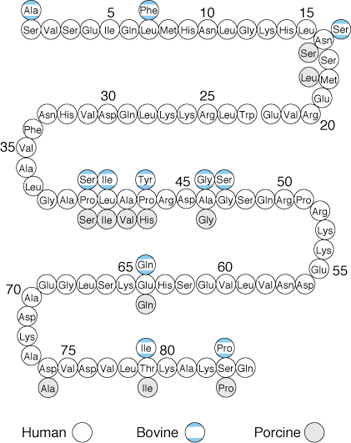 (human)วัว (bovine)และสุกร(procine) จะพบว่ามีโครงสร้างที่คล้ายกัน
