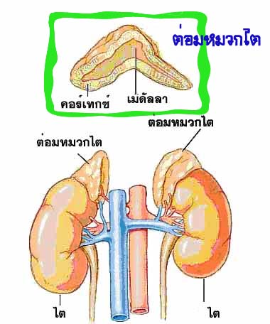 และต่อมหมวกไตด้านในหรืออะดรีนัลเมดัลลา(adrenal medulla) ซึ่งผลิตฮอร์โมนที่ทำหน้าที่ต่างกัน