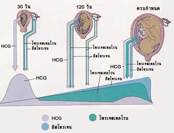 เมื่อระยะเวลาการตั้งครรภ์มากขึ้น รกจะผลิตฮอร์โมนอีสโทรเจนและโพรเจสเทอโรนได้มากขึ้น