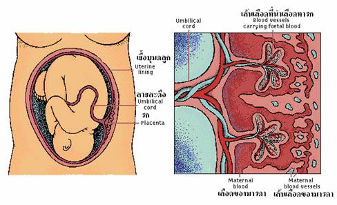 ก) ทารกในครรภ์ต้องอาศัยรกในการแลกเปลี่ยนอาหาร