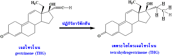 สูตรโครงสร้างของเจสไทรโนนและเตตระไฮโดรเกสไทรโนน