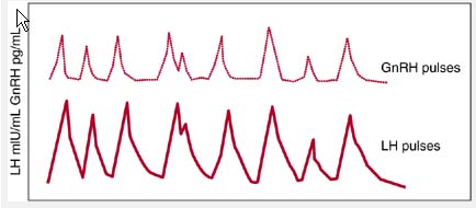 อาร์เอช : GnRH ) จากไฮโพทาลามัสมากขึ้น การหลั่งจะเป็นแบบจังหวะ มากระตุ้นต่อมใต้สมองส่วนหน้าให้หลั่ง