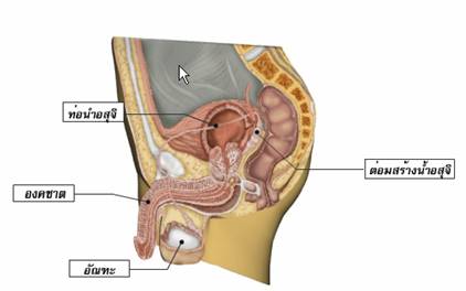(ejaculatory duct) ซึ่งเปิดเข้าสู่ท่อปัสสาวะ (urethra) ตรงต่อมลูกหมาก