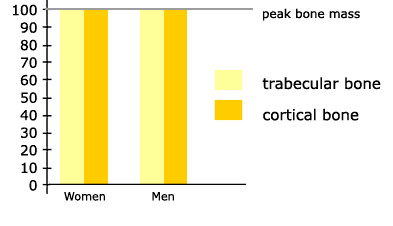 เมื่อเปรียบเทียบการลดลงของกระดูกระหว่างผู้ชายและผู้หญิง จะพบว่าเพศชายลดลงน้อยกว่าในอายุเท่ากัน