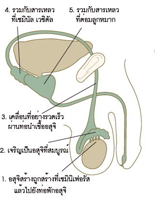 ที่ขดไปมานี้ จนกระทั่งเมื่อถึงปลายท่อพักอสุจิ ก็จะเจริญเป็นอสุจิที่สมบูรณ์