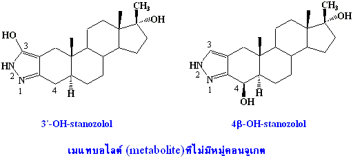 โครงสร้างของสเตโนโซลอลขณะถูกเมแทบอไลต์ที่ตับหรือกล้ามเนื้อและขับออกทางปัสสาวะ